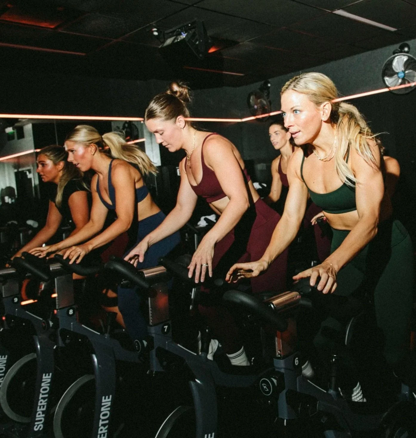 SUPERTONE is a dual-concept fitness studio that unites strength training and cycling in one rhythmic experience